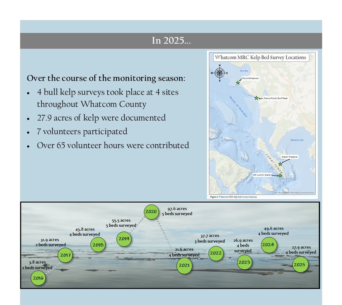 As part of her Marine Conservation capstone project at Western Washington University, Lee Dexter chose to complete a visual project on kelp conservation. Lee completed a painting of common species found in the bull kelp ecosystem in the Salish Sea. The goal was to develop a publicly available display of the importance of bull kelp in the Salish Sea and to show connections with the bull kelp forest ecosystem.