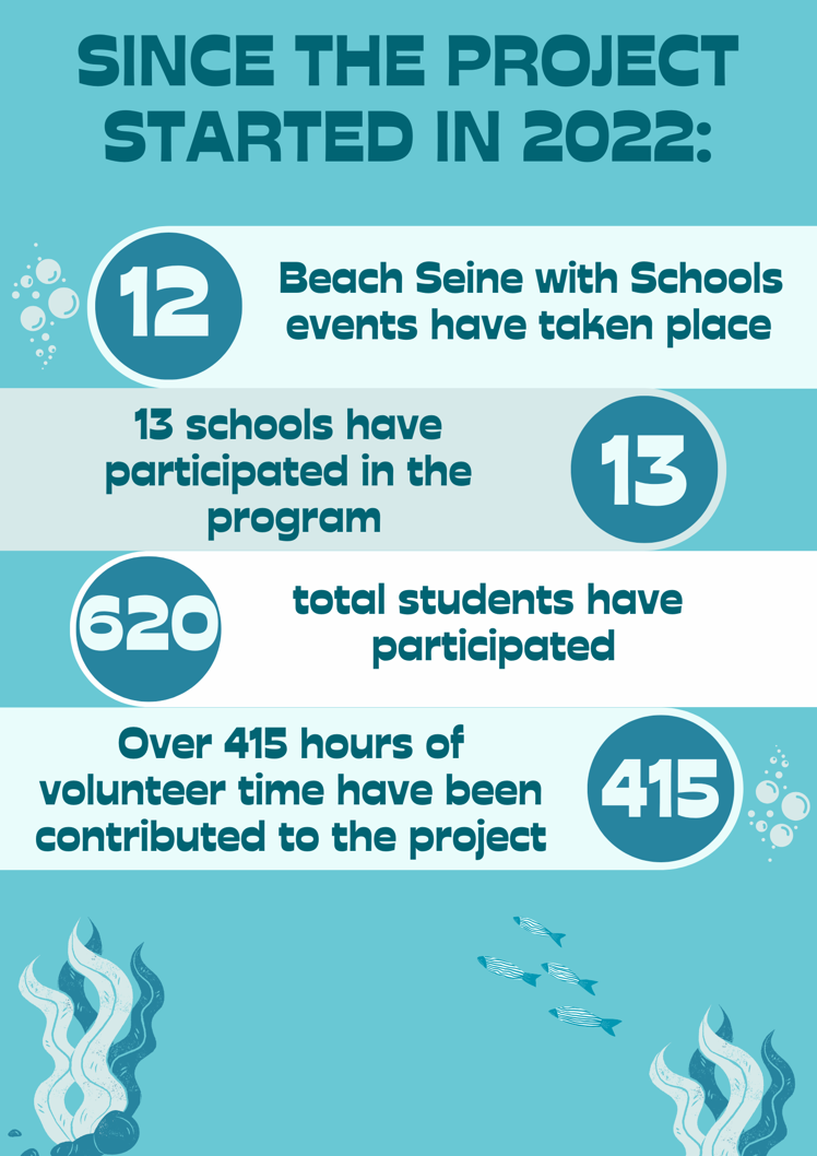 The Beach Seine with Schools project relies on various partners, organizations, and the local community to help facilitate the program. Partners include Lummi Natural Resources, Tribal speakers and marine scientists, the Salish Sea School, the Nooksack Salmon Enhancement Association, the Northwest Straits Foundation, Whatcom County Public Works, and several community volunteers.